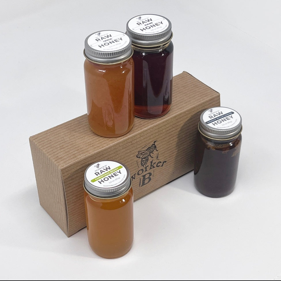 We selected a diverse variety from various areas of Hawaii for this Raw Honey Sampler Gift Set. Taste four truly distinct honey minis packaged in a ready-to-gift box. Or keep them for yourself! Containing these raw honeys with the following flavor profiles: